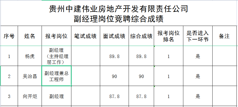 附件:貴州中建偉業(yè)房地產(chǎn)開發(fā)有限責(zé)任公司副經(jīng)理崗位競(jìng)聘綜合成績(jī)
