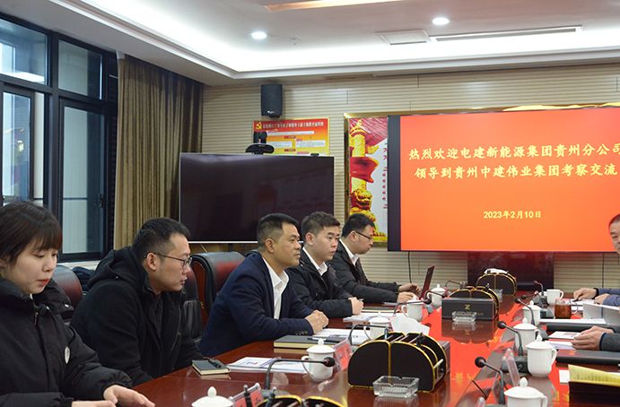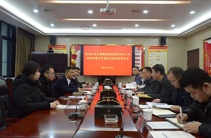 為深化黔東南州新能源資源的合作開發(fā)利用,2023年2月10日,央企中電建新能源集團貴州分公司副經(jīng)理鐘輝一行赴中建偉業(yè)集團公司考察交流,達成初步合作意向。貴州中建偉業(yè)集團公司黨委副書記、總經(jīng)理馮安翔在集團公司17樓會議室熱情接待并主持座談,黨委委員、副總經(jīng)理王引明、王振田,董事長助理張政雄、總經(jīng)理助理田應欽、經(jīng)營部經(jīng)理王劍和參加座談。