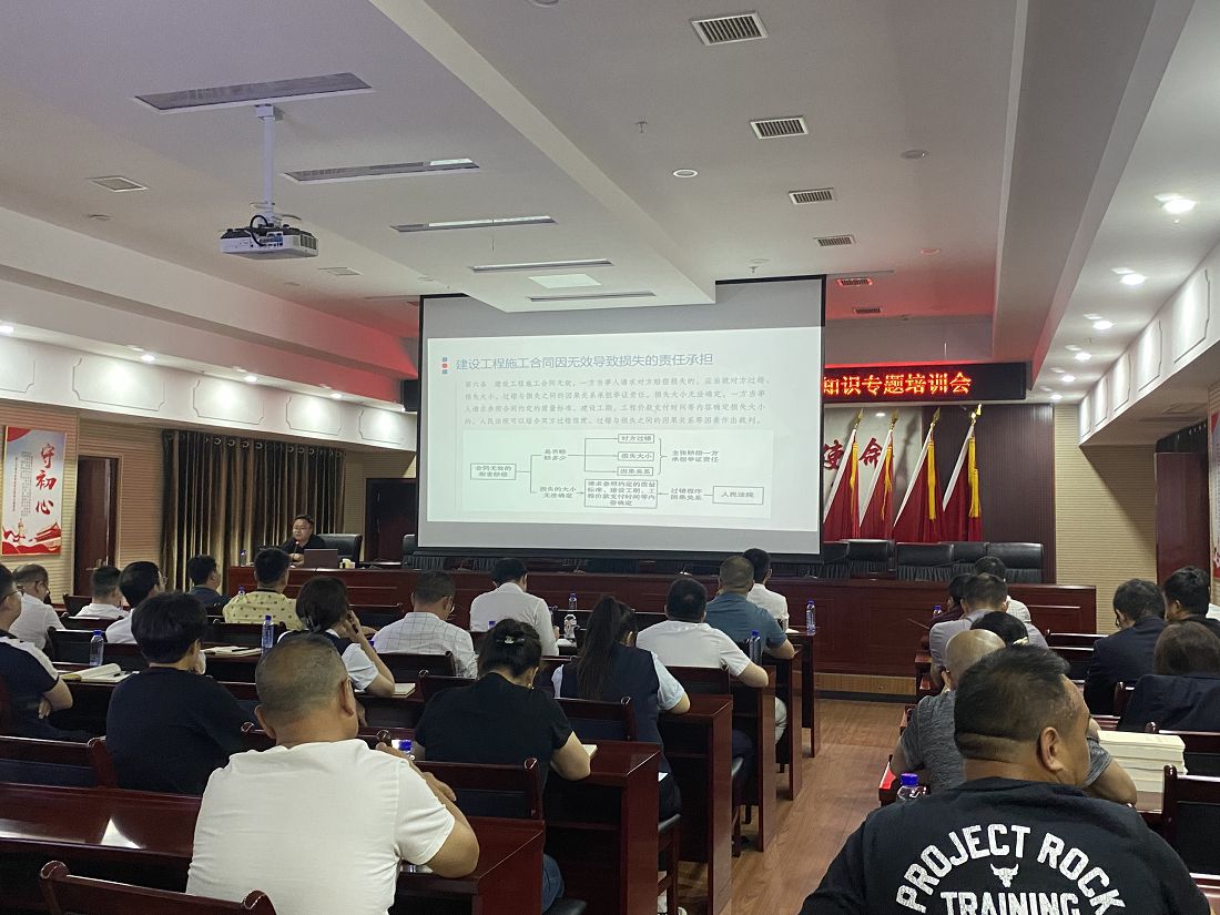 會(huì)上,兩位律師向參訓(xùn)人員講解《憲法》《民法典》《反有組織犯罪法》等法律知識(shí)。針對(duì)工程管理和企業(yè)經(jīng)營(yíng)管理等行業(yè)熱門(mén)話題,著重講解了《民法典》中涉及的合同編、物權(quán)編、侵權(quán)責(zé)任編及《公司法》等相關(guān)內(nèi)容,結(jié)合集團(tuán)公司及其他典型案例,將原本晦澀難懂的法條變得清晰易懂。